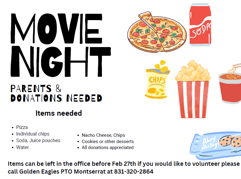 Copy of Copy of Donations for Golden Eagles PTO Movie Night - REMINDER